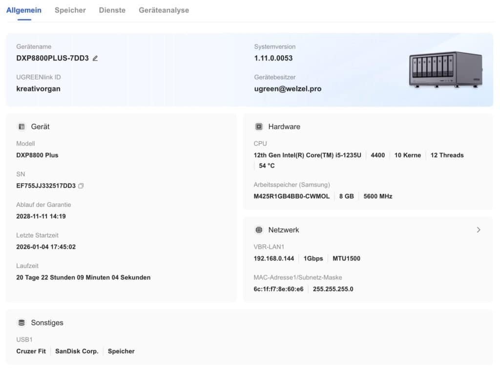 Ich hatte eigentlich geplant, noch einen ausführlichen Artikel über UnRaid auf dem DXP8800 Plus zu schreiben. Da mir UGOS aber mittlerweile so gut gefällt und ich auf die zukünftige Entwicklung gespannt bin, werde ich vielleicht lieber bei UGOS bleiben und darüber noch einmal im Detail berichten. Woran wärt ihr mehr interessiert? Ein Artikel über UnRaid auf dem Ugreen NAS oder über UGOS? Schreibt es gerne in die Kommentare.